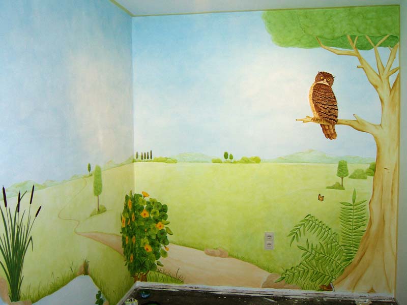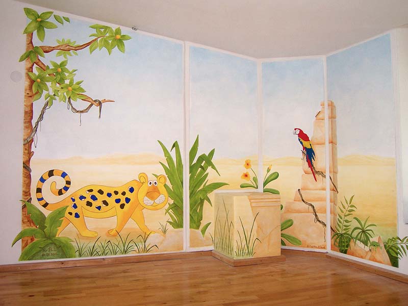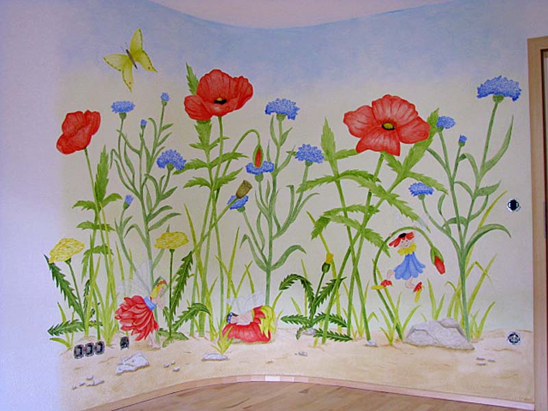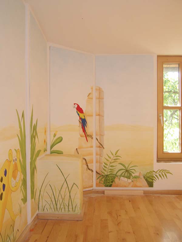 Entwurf und Bemalung einzelner Wände bzw. ganzer Zimmer, auch gerne auf transportablen Platten oder Leinwänden.